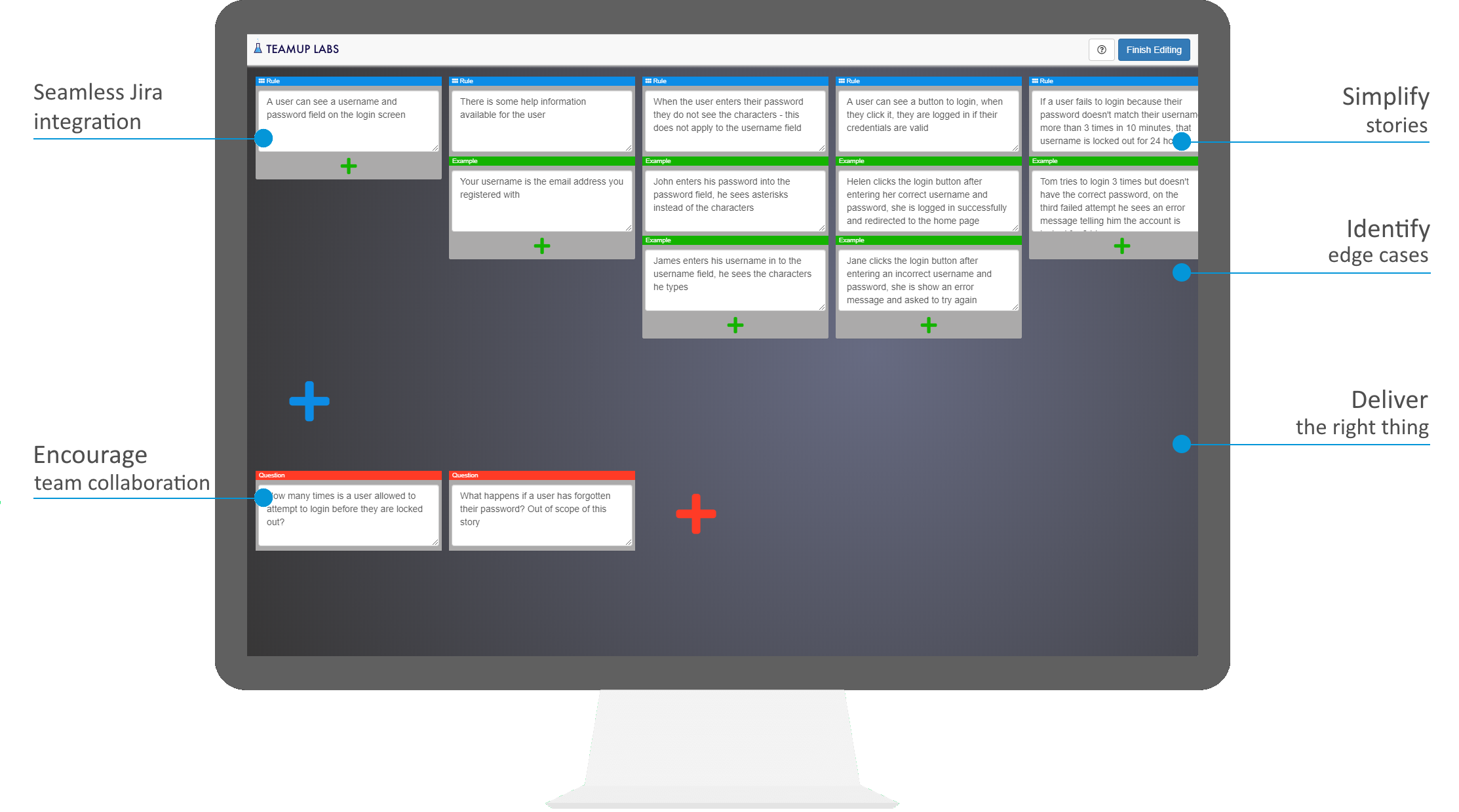 Example Mapping is a team based technique for capturing feature requirements invented by Matt Wynne. It's simple to use and as an agile software engineering team we've found it fantastic for: